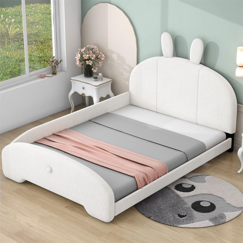Full Size Upholstered Platform Bed with Cartoon Ears Shaped Headboard