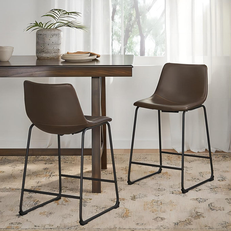 Enjoy these traditional-looking counter stools in your home today. These counter stools feature a wide seat to help increase comfort while seated. The low footrail also helps increase comfort by allowing your legs to hang a bit without dangling, allowing you easy access to and from the counter stool. These counter stools are sure to fit with any decor and will be an incredible addition to your home. This easy-to-maintain leather alternative offers a uniform grain with the texture and feel of real leather. All of the instructions and tools needed for assembly are included.