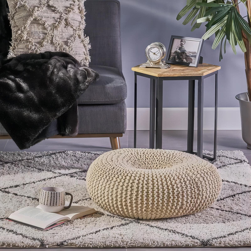 Enjoy this cotton pouf in any room of your home. Perfect for putting your feet up or using it as a small extra seat when the company is over. Easy to store in a corner or by the bed when not in use, this pouf not only looks cute but is functional too.